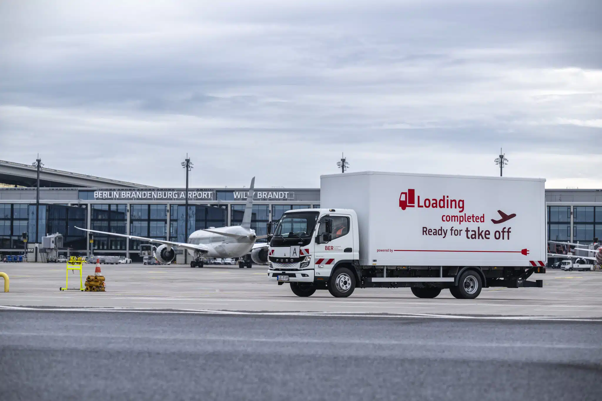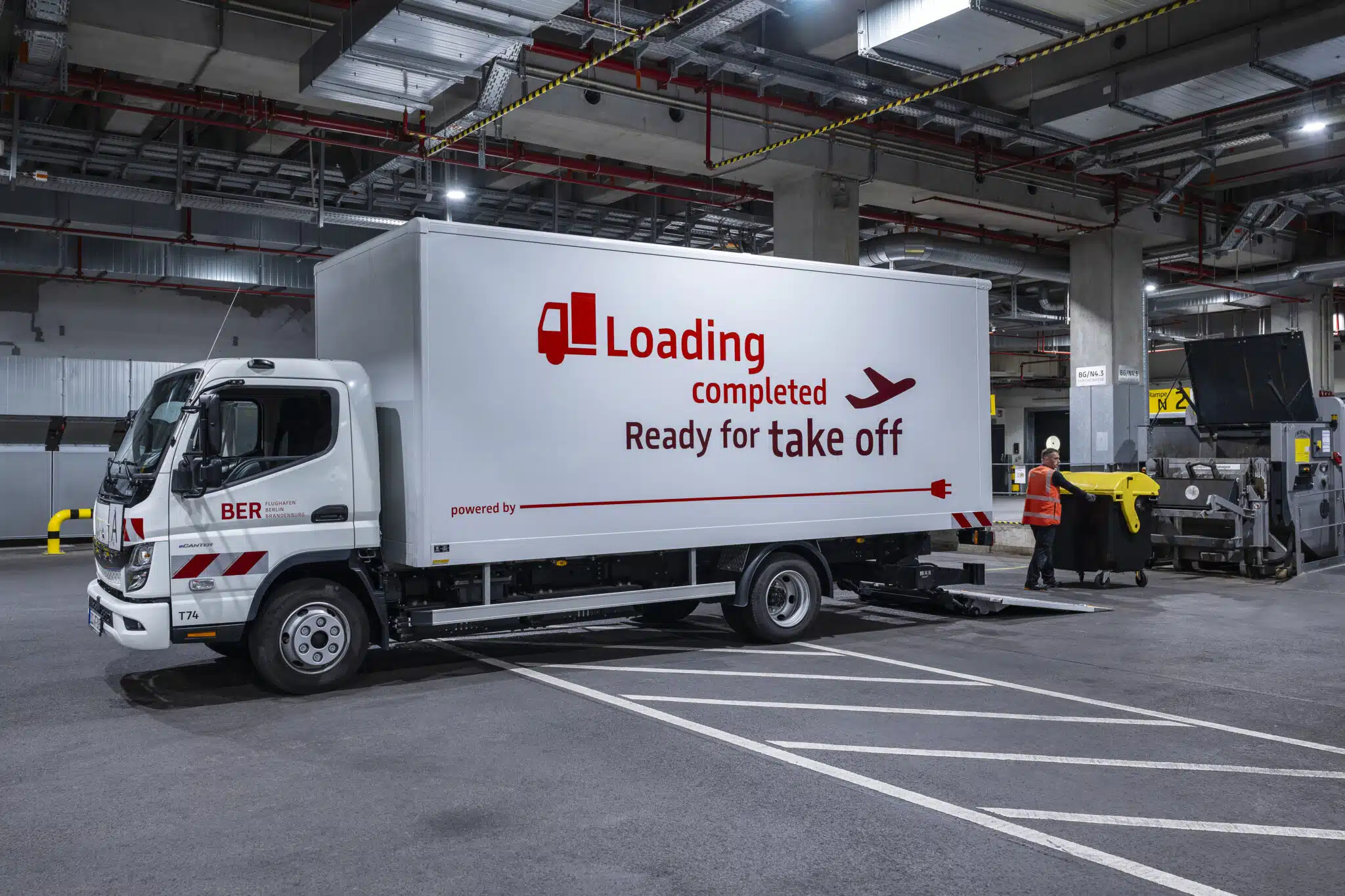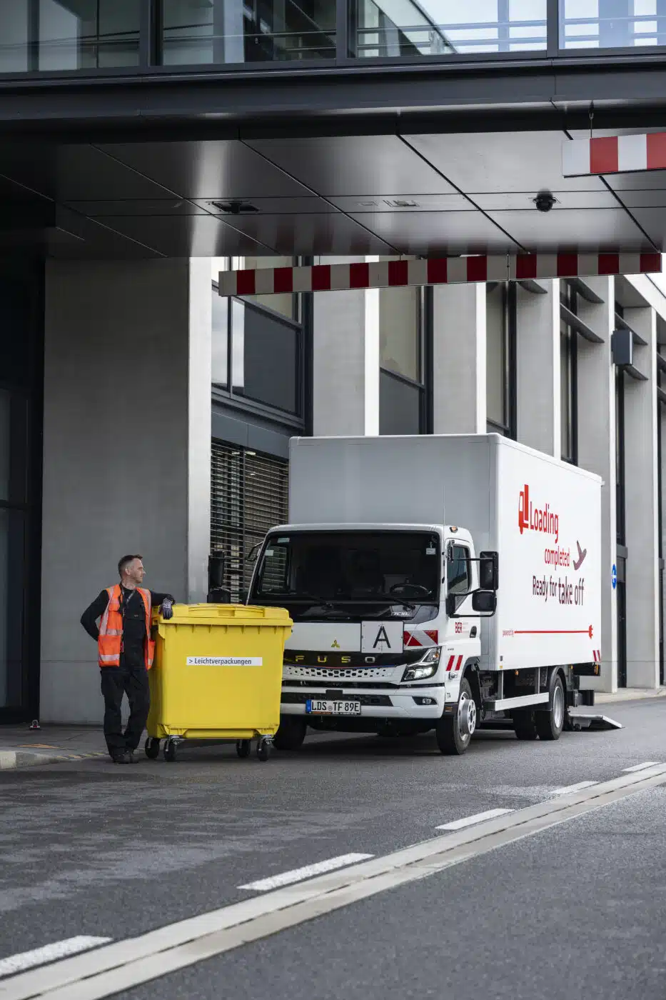 Há um ano e meio que a Flughafen Berlin Brandenburg GmbH aposta na eletromobilidade no quadro da sua estratégia de sustentabilidade para o processamento da sua logística interna de resíduos e eliminação – como se pode ver, é exatamente o trabalho certo para a FUSO eCanter 7C18e.
