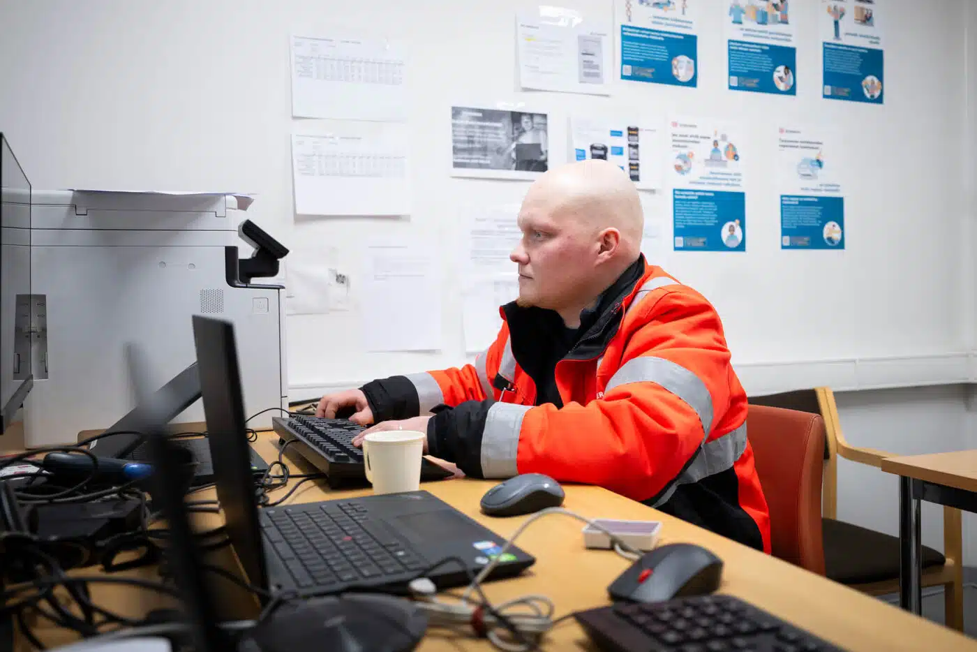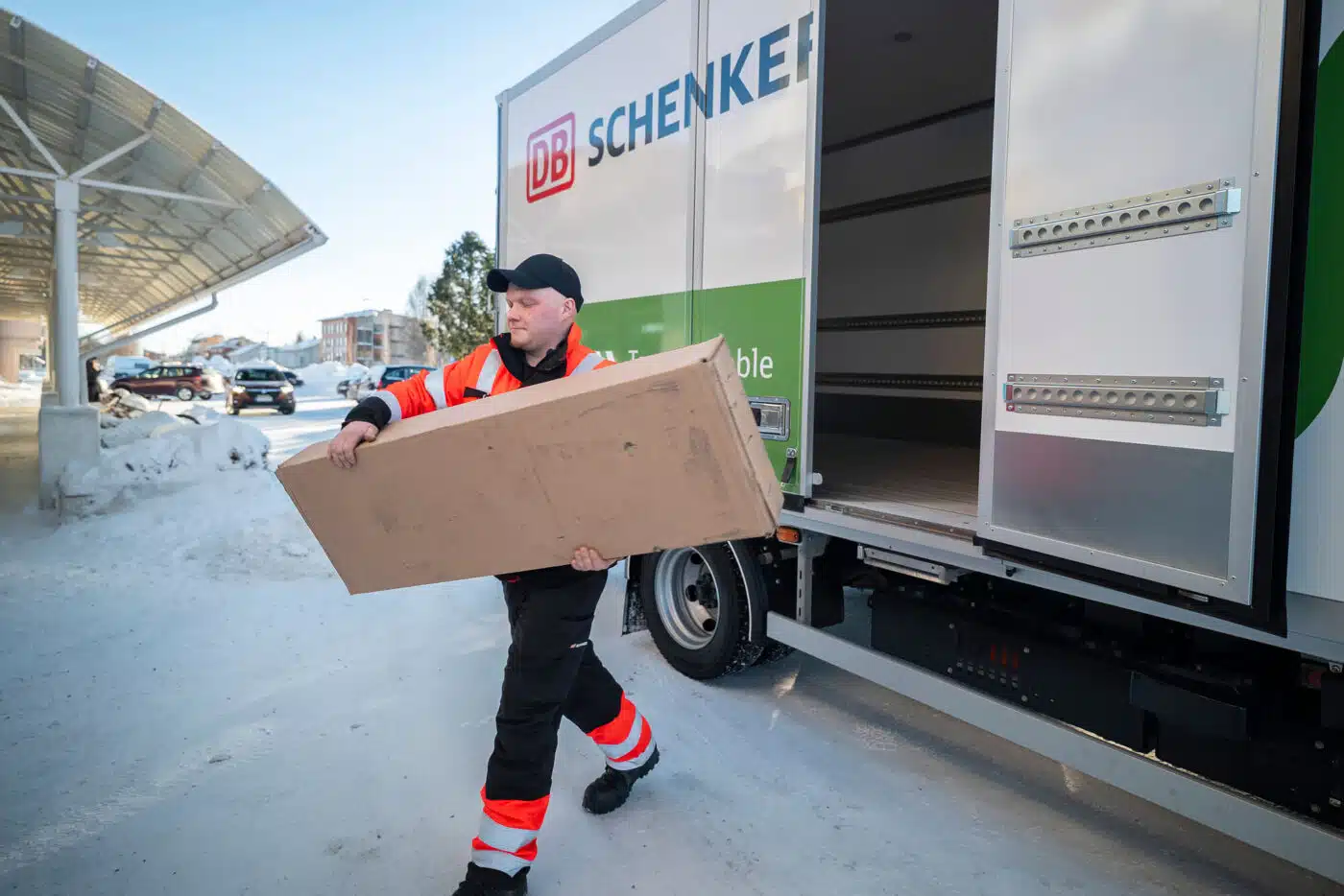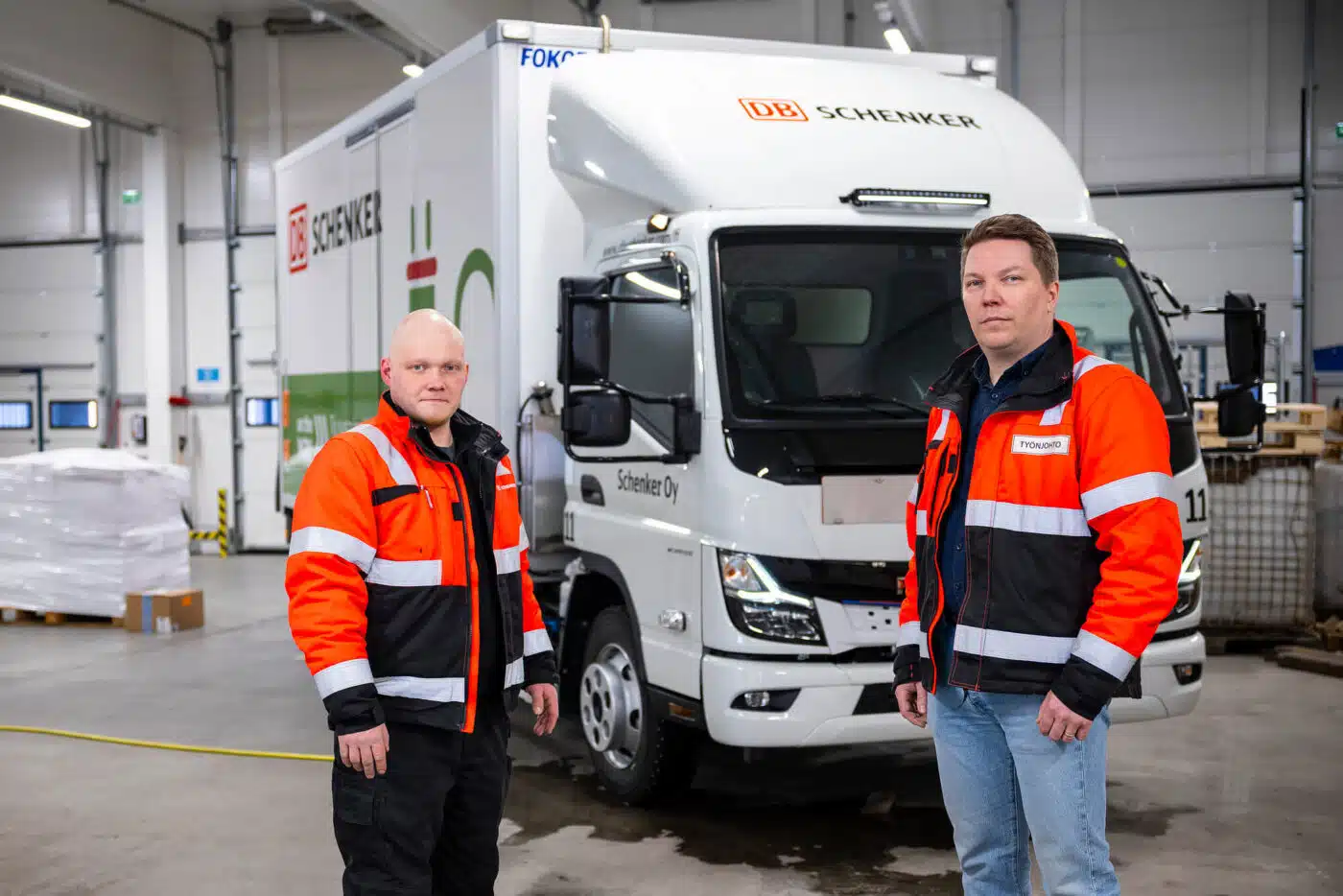 Na sua função de chefe de terminal, também está satisfeito com a carga útil do camião de 7,49 toneladas. Apesar das baterias, o peso é de 3.200 kg. Com uma distância entre eixos de 3.400 mm, o eCanter pode ainda oferecer até 15 lugares para paletes nesta configuração. “Na cabe bem alguma coisa. Desta forma, podemos realmente apoiar os outros dois camiões”, explica Sami Määttä. A única falha: Atualmente, o aquecimento na parede corta-fogo da caixa fechada ainda funciona através de um pequeno depósito de biodiesel adicional. Este requisito especial local deve-se às temperaturas geladas e é necessário para transportar produtos médicos sensíveis que não podem congelar. Infelizmente, ainda não foi possível solucioná-lo eletricamente, uma vez que extrairia demasiada energia das baterias de tração.